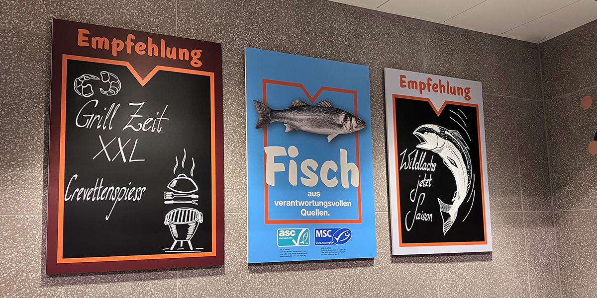 Bereits seit neun Jahren sind wir Partner der Migros und setzen sämtliche Beschriftungen in den Filialen um. Wir waren auch massgeblich an der Entwicklung des neuen Ladenkonzeptes beteiligt. Wir haben viel getüftelt und ausprobiert, bis das Endergebnis der Beschriftung perfekt war.