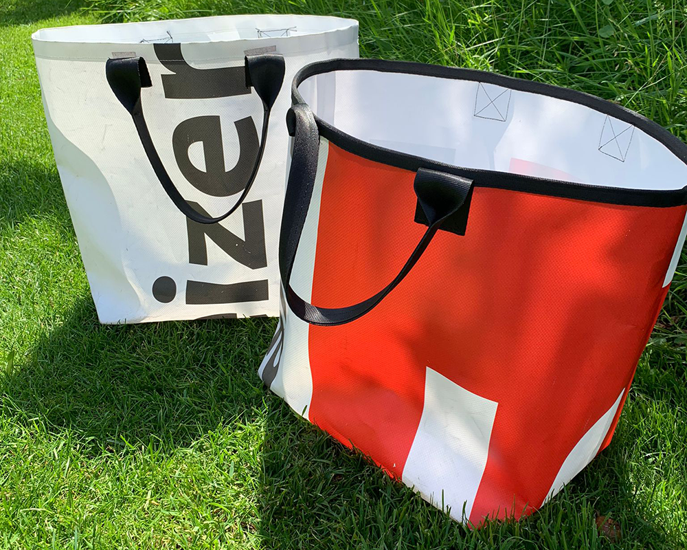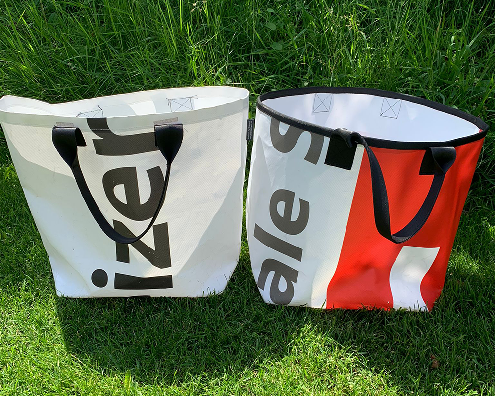 Unsere Werbeblache wird nach dem Event nicht etwa einfach entsorgt, sondern vom Atelier für Frauen zu Taschen weiterverarbeitet, die dann verkauft oder versteigert werden. Es freut uns gleich doppelt, dass die Blache nachhaltig genutzt wird und die Stiftung dadurch von zusätzlichen Einnahmen profitieren kann.